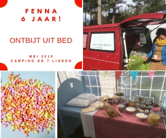 Fenna werd 6 jaar, en dat werd gevierd op de camping. Na een lange dag feest en een toch wat koude nacht op de camping zette ik met veel plezier een lekker ontbijt voor Fenna en haar familie en vrienden klaar. Behalve de lekkere yoghurtjes, warme koffie en hartige ontbijttaart werd er ook genoten van de speurtocht. De kids vonden de 9 boterhammen en wisten het juiste antwoord te ontcijferen. Wist jij dat hagelslag voor het eerst in 1936 werd gemaakt?